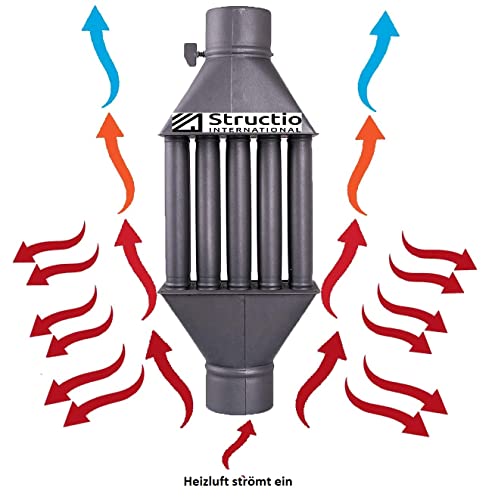 De heteluchtwarmtewisselaar van Structio International met een aansluitdiameter van 130 mm en 5 buizen die het warmtewisseloppervlak verhogen.