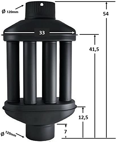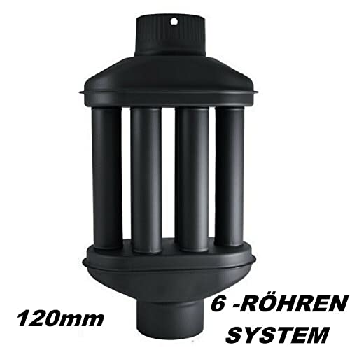 Uitlaatwarmtewisselaar 120 mm warmeluchtwisselaar 6 buizen, schoorsteenbuis, rookgaskoeler, uitlaatpijp, kachelpijp, uitlaatgaswarmtewisselaar 120 mm, totale hoogte 55 cm robuuste warmluchtafvoer: waardevolle uitlaatwarmte van je haard wordt door het grote oppervlak van de 6 kanalen aan de lucht afgevoerd zonder daarbij de schoorsteenkracht. wezenlijk te beïnvloeden Energiekosten besparen: de uitlaatgaswarmtewisselaar zorgt voor een aanzienlijk hogere opbrengst van de gebruikte verwarmingsenergie en helpt daardoor energiekosten te verlagen en het milieu te ontzien. Eenvoudig in gebruik: de rookgaskoeler is geschikt voor kachels, open haarden, houtketels en houtcarburateurs. De buis wordt eenvoudig tussen de bestaande uitlaatpijpen van de oven gestoken. Kleur zwart – mat