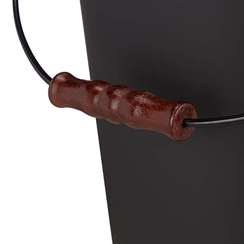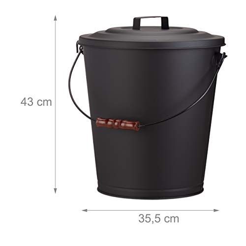 Relaxdays Asbak met deksel, stalen kolenemmer met 24 l opbergruimte, schoorsteenemmer met handvat en houten handvat, zwart