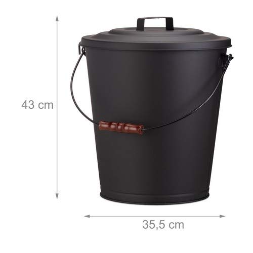 Specificaties: Relaxdays Asbak met deksel, stalen kolenemmer met 24 l opbergruimte, schoorsteenemmer met handvat en houten handvat, zwart