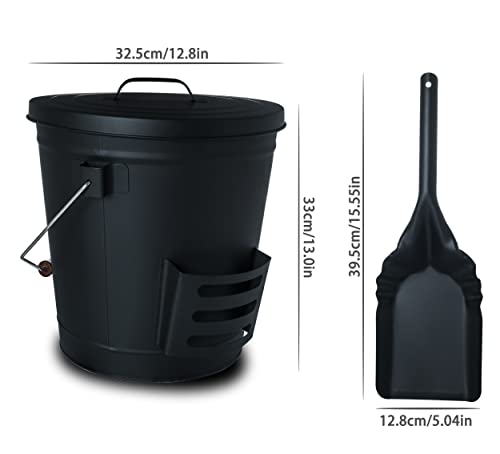 Supremery Asemmer met deksel en schep, staal, kolenemmer, asbak met handvat, 19 l, asschep, open haard en grill
