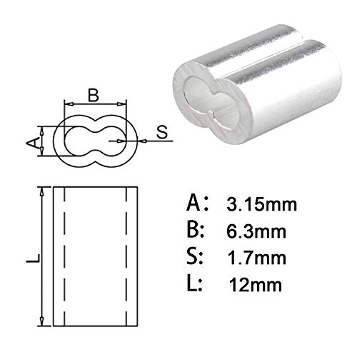 Specificaties: Futheda 100 stks Aluminium Crimping Loop Mouw Clips met Dubbele Ferrules/Gaten voor 2.5mm Kabeldraad Touw Zilver Tone