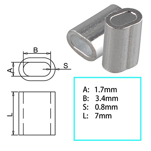 Specificaties: Futheda 100 stks Aluminium Krimploop Mouw Clips Ovaal Vormige voor 1.5mm Kabel Draad Touw Zilver Tone