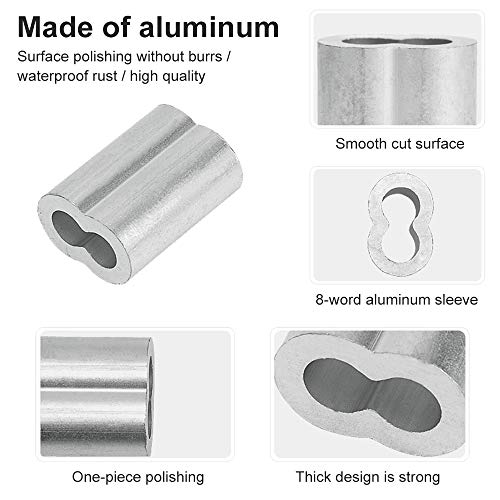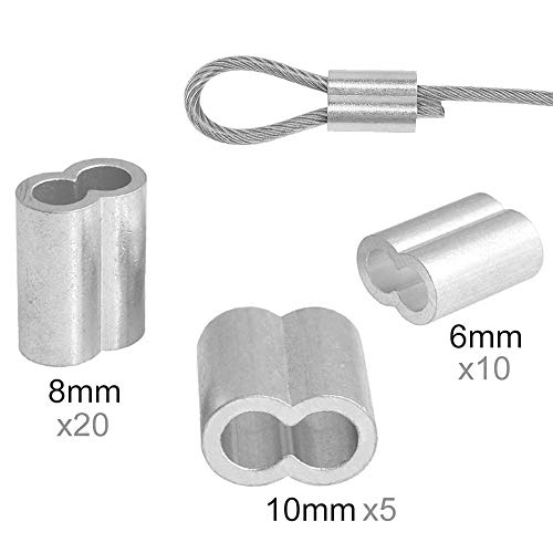 Pakket omvat: 3 maten van staalkabel aluminium huls, in totaal 35 stuks, kan aan uw verschillende behoeften voldoen.