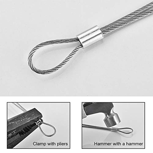 Eenvoudig te gebruiken: Aluminium krimp lus mouwen zijn gemakkelijk en moeiteloos te gebruiken. Sluit beide uiteinden van de geleidingsdraad eenvoudig met bankschroef, tang of persgereedschap.