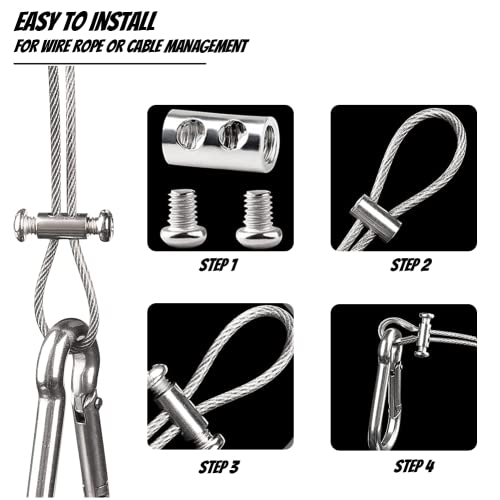 ZACUDA 60Pcs Verstelbare Draad Touw Clips Voor 1-2 mm Diameter Kabel Grips Draad Touw Lock Met End Schroef Stop & Schroevendraaier Vormige Kabel Klem Aluminium Krimplus Mouw