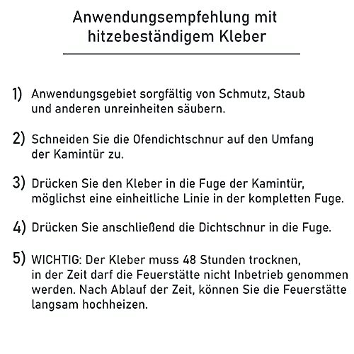 LANZZAS ovenafdichtsnoer – hoogwaardige haarddeurafdichting van glasvezelband, incl. hoge temperatuur afdichtkoord.