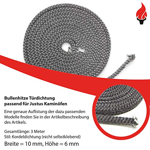 Specificaties: Openhaardafdichting platte afdichting 3m, ø 10x6mm afdichtband NIET zelfklevend voor deurafdichting. Geschikt voor verschillende Justus open haard modellen