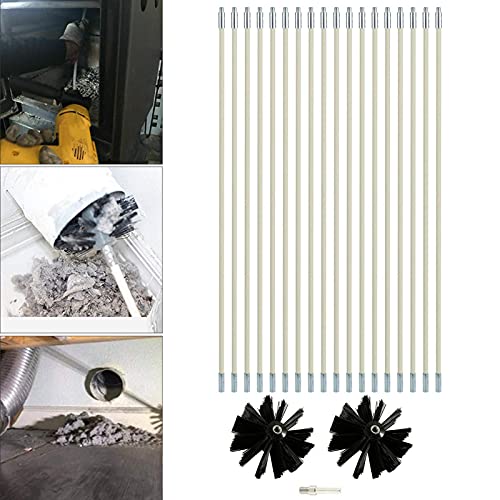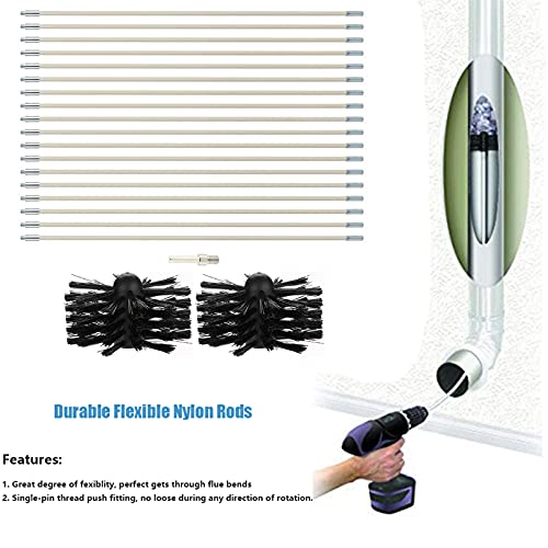 20 Stks Schoorsteen Schoonmaakborstel, Schoorsteen Kit Vegen Afvoer Set Schoorsteen Borstel Open haard Reiniging Gereedschap Kit voor Duct Vent Reiniging Open Haard Rookkanaal, 18 Staven (410mm*100mm) 1 Borstel Hoofd 1 Zeshoekige Staaf