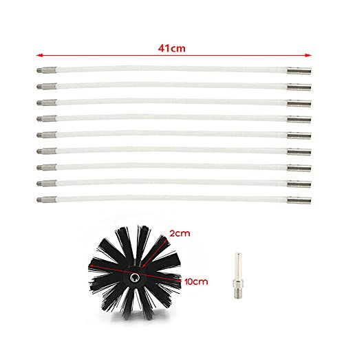 Ovenpijpborstel, reinigingsborstel, verwarmingsketelborstel, set haardreinigingsstaaf, haardborstel met 9 410 mm nylon stangen, 1 borstelkop en 1 zeskantstang voor airconditioning, koeler, droger en wasmachine